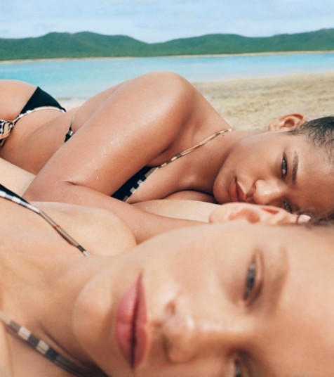 Summer campaign featuring models lying on beach